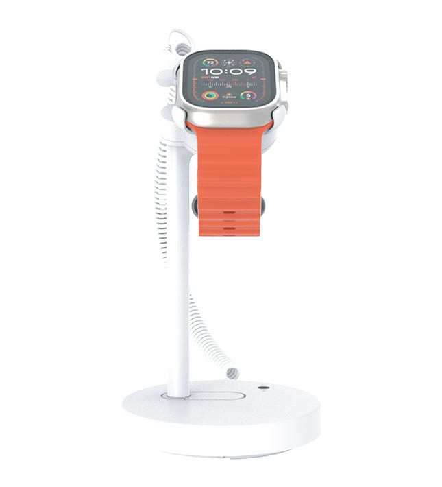 MagStand for Wearables is a premium magnetic display solution designed to showcase smartwatches and fitness trackers securely and beautifully. With simple docking, fast access, and optional charging, it delivers an effortless experience for customers and store associates alike.