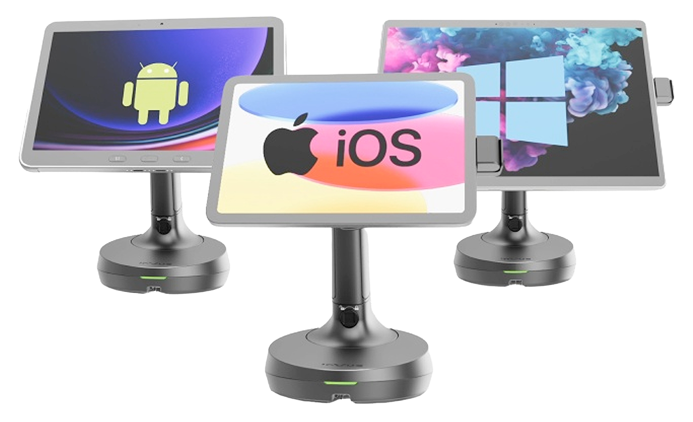 Compatible with any tablet up to 13″ from any manufacturer. You can even switch your operating system without the need for costly upgrades and additional equipment.